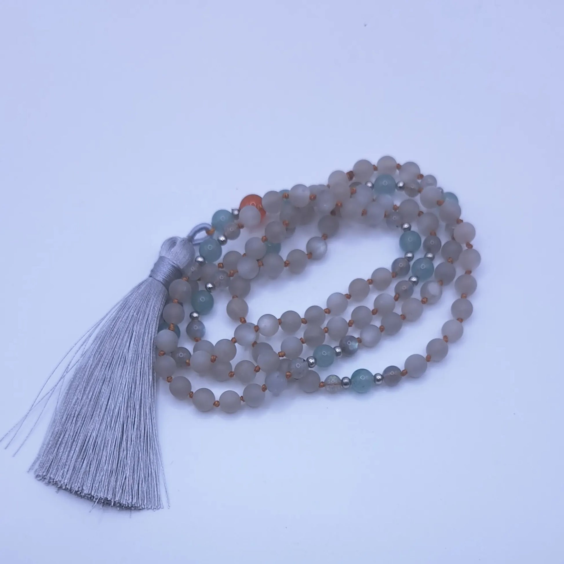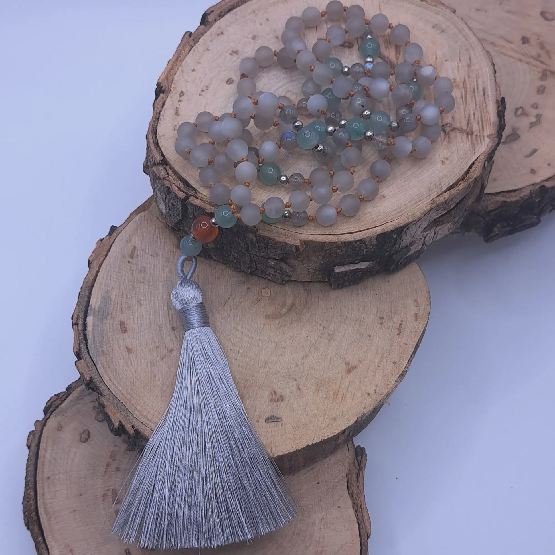 Handgeknüpfte Mala aus Mondstein, Labradorit und Aventurin