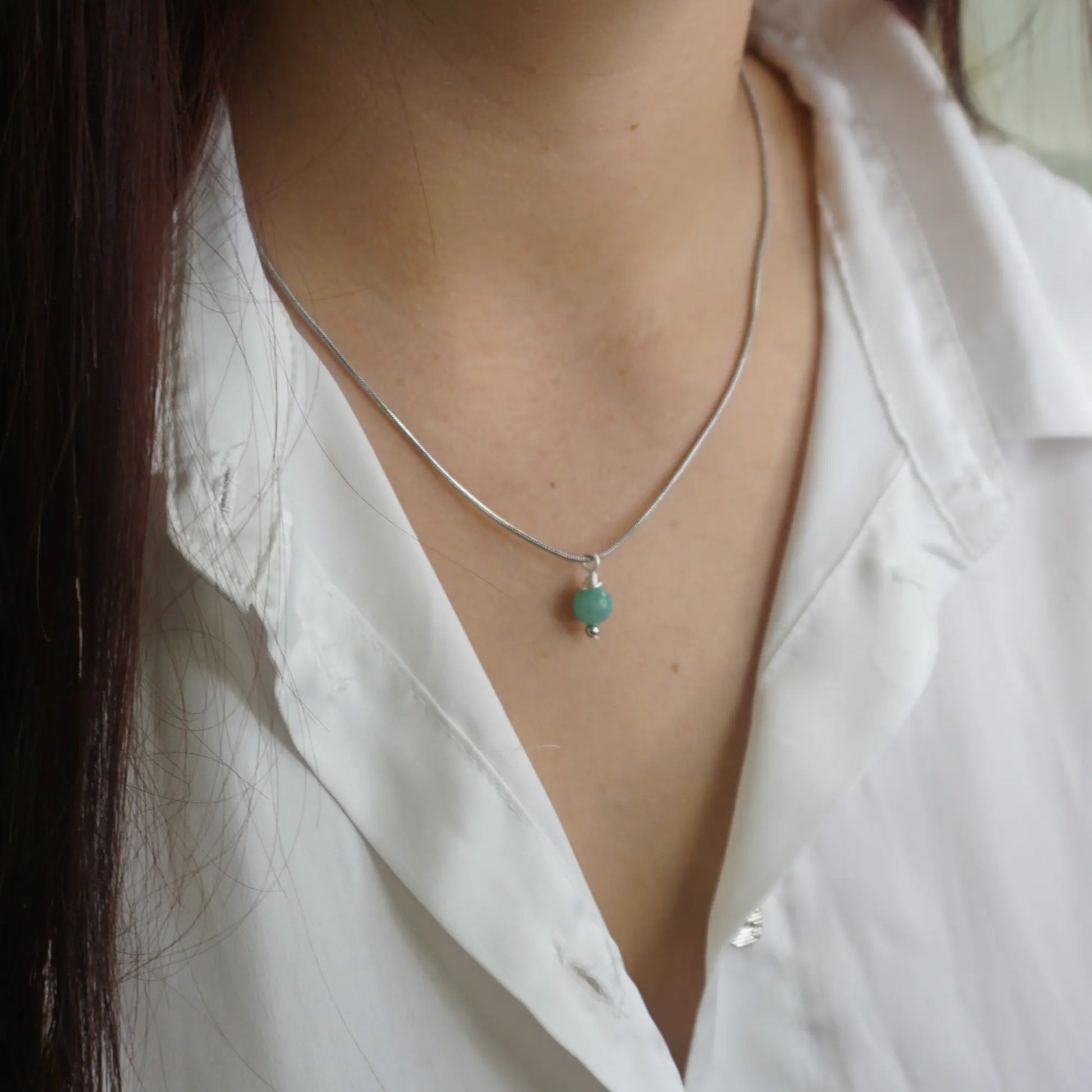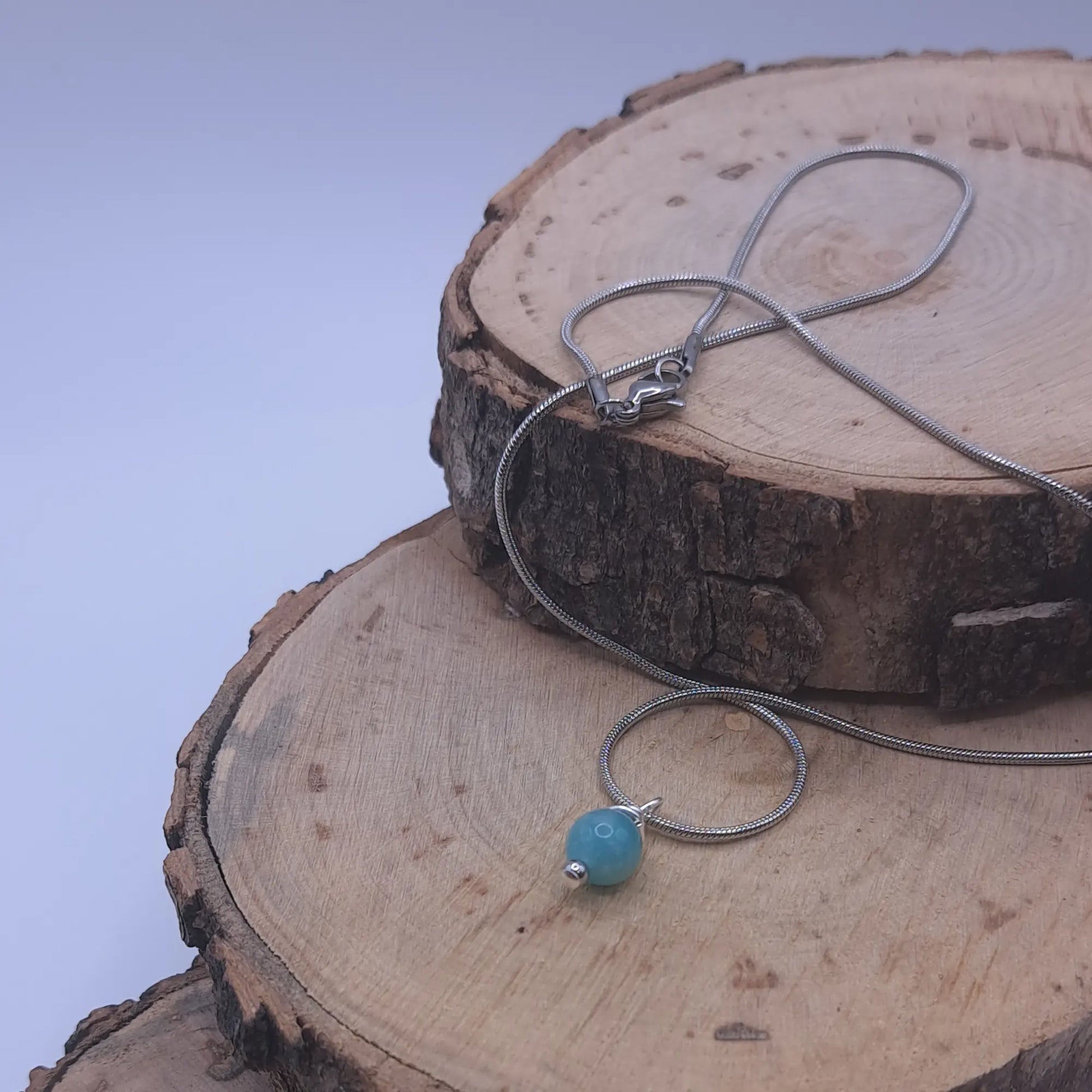 Schlichte Heilsteinkette aus Edelstahl mit Amazonit-Perle