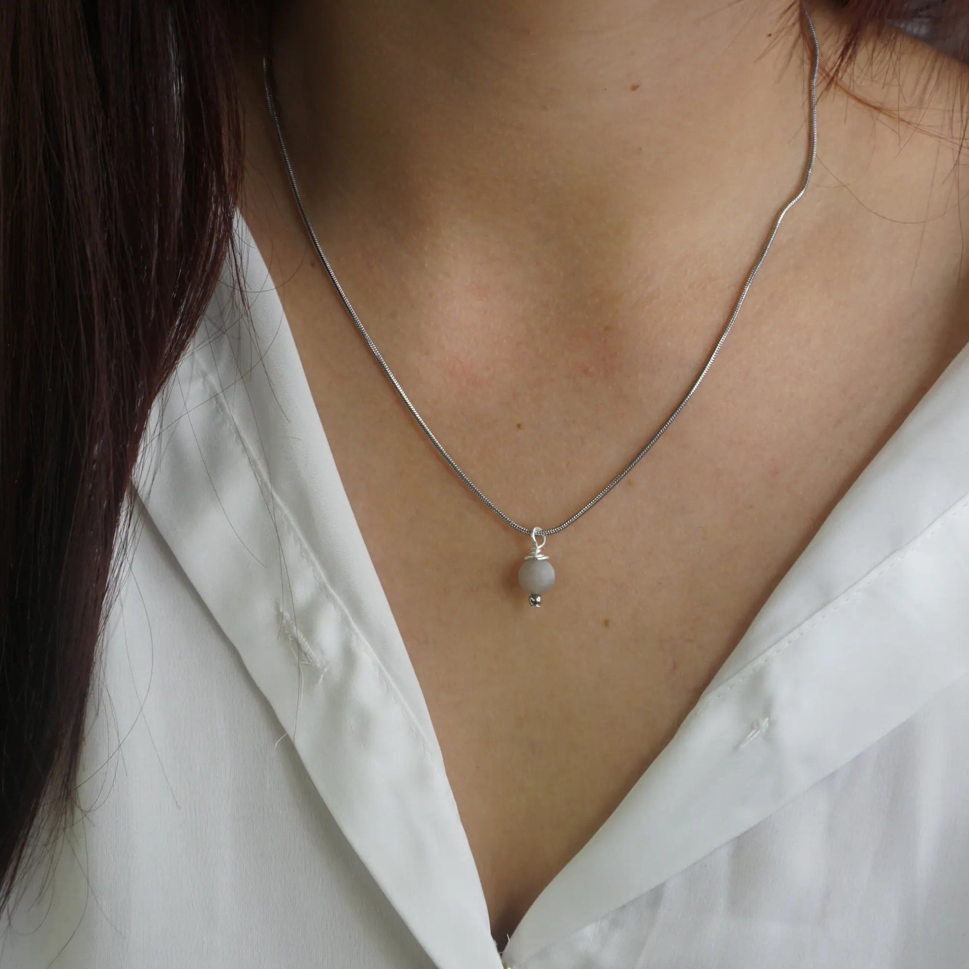 Schlichte Heilsteinkette aus Edelstahl mit Mondstein-Perle