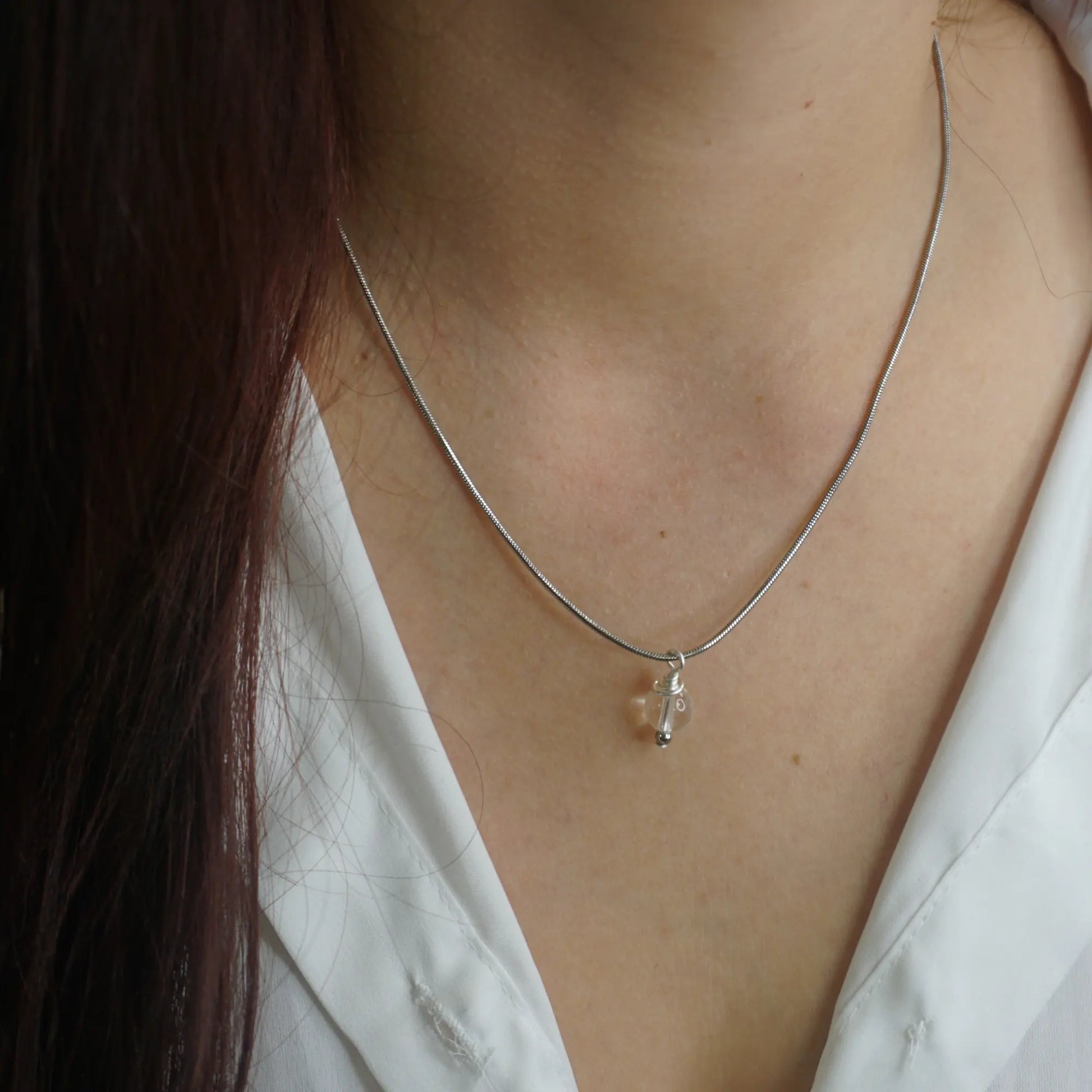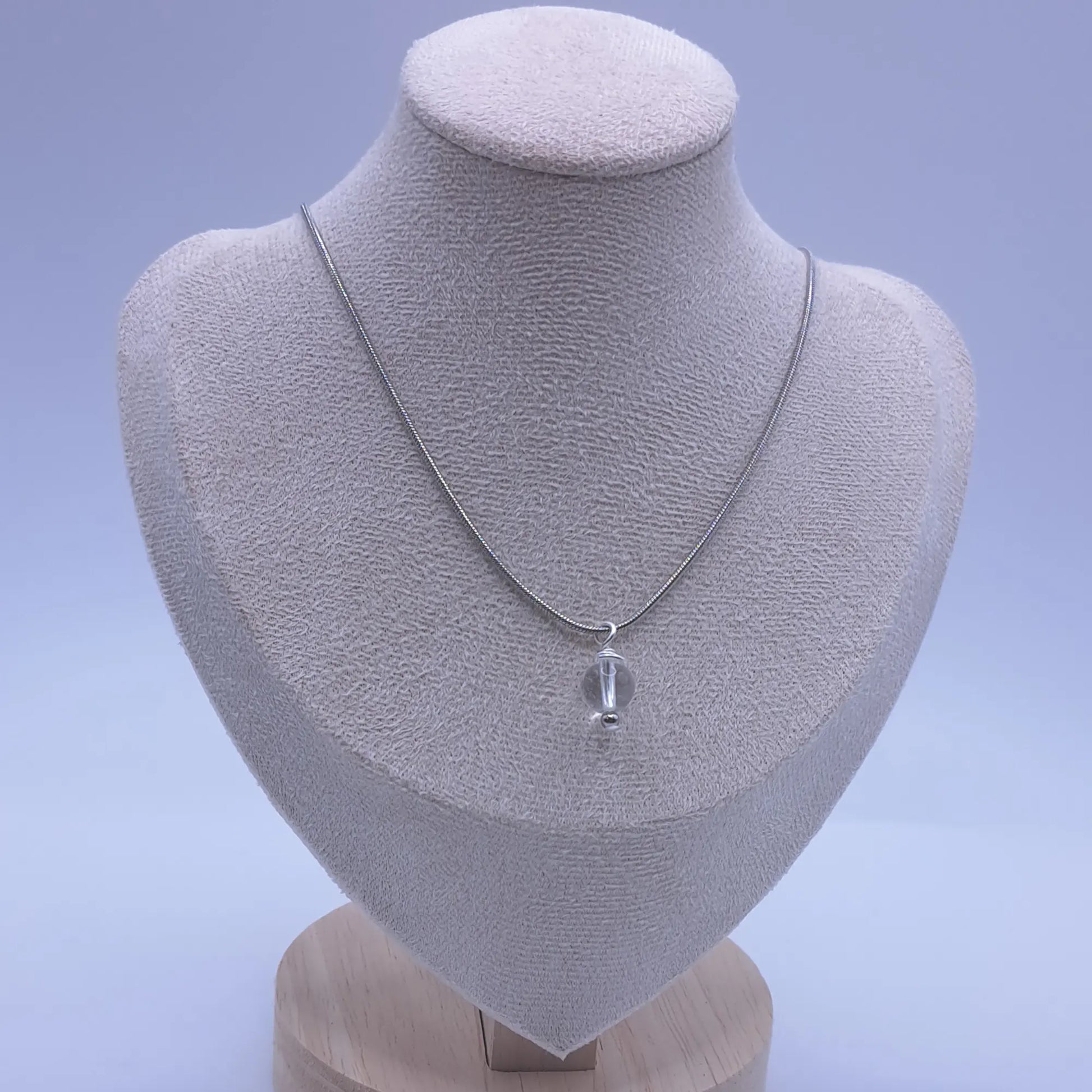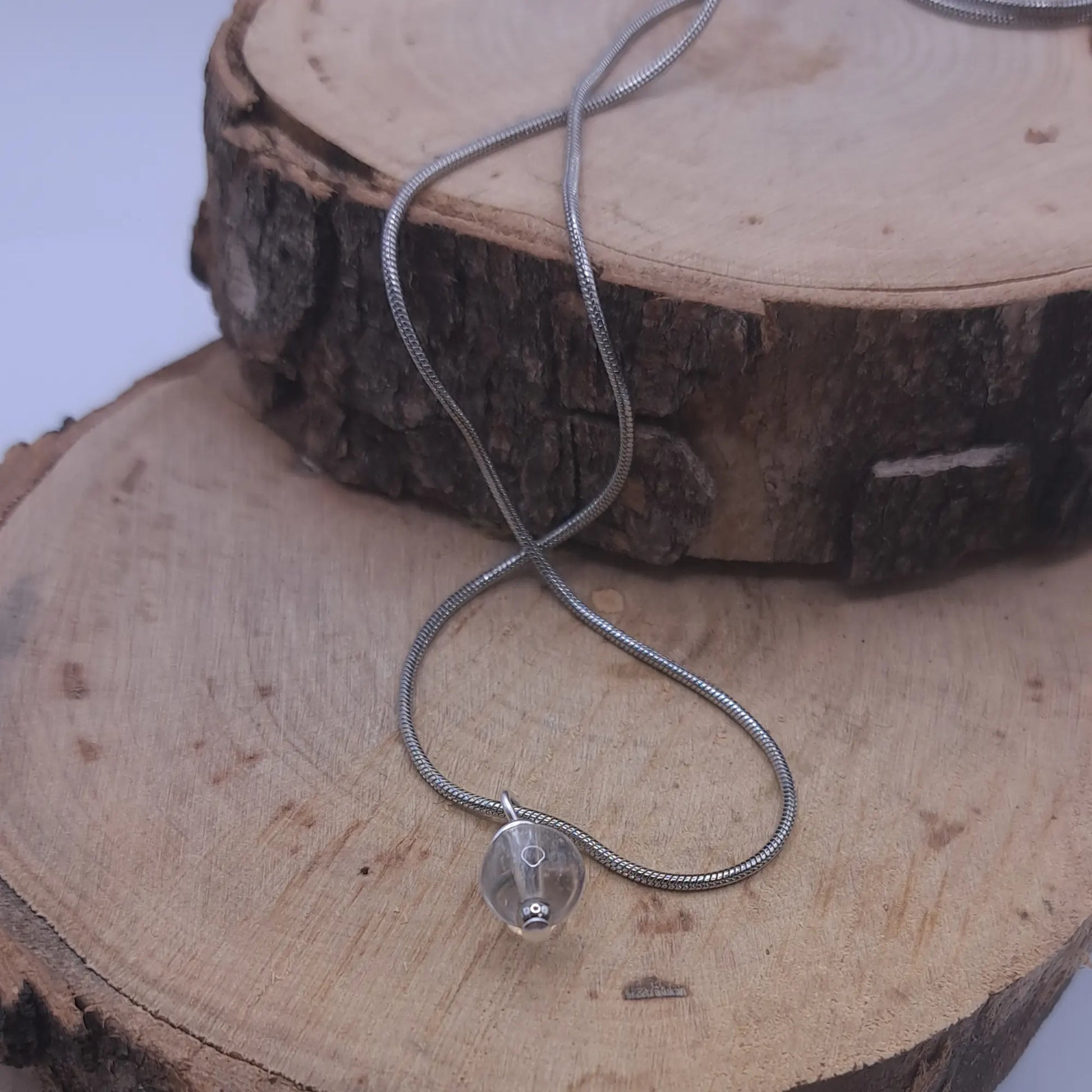 Schlichte Heilsteinkette aus Edelstahl mit Bergkristall-Perle