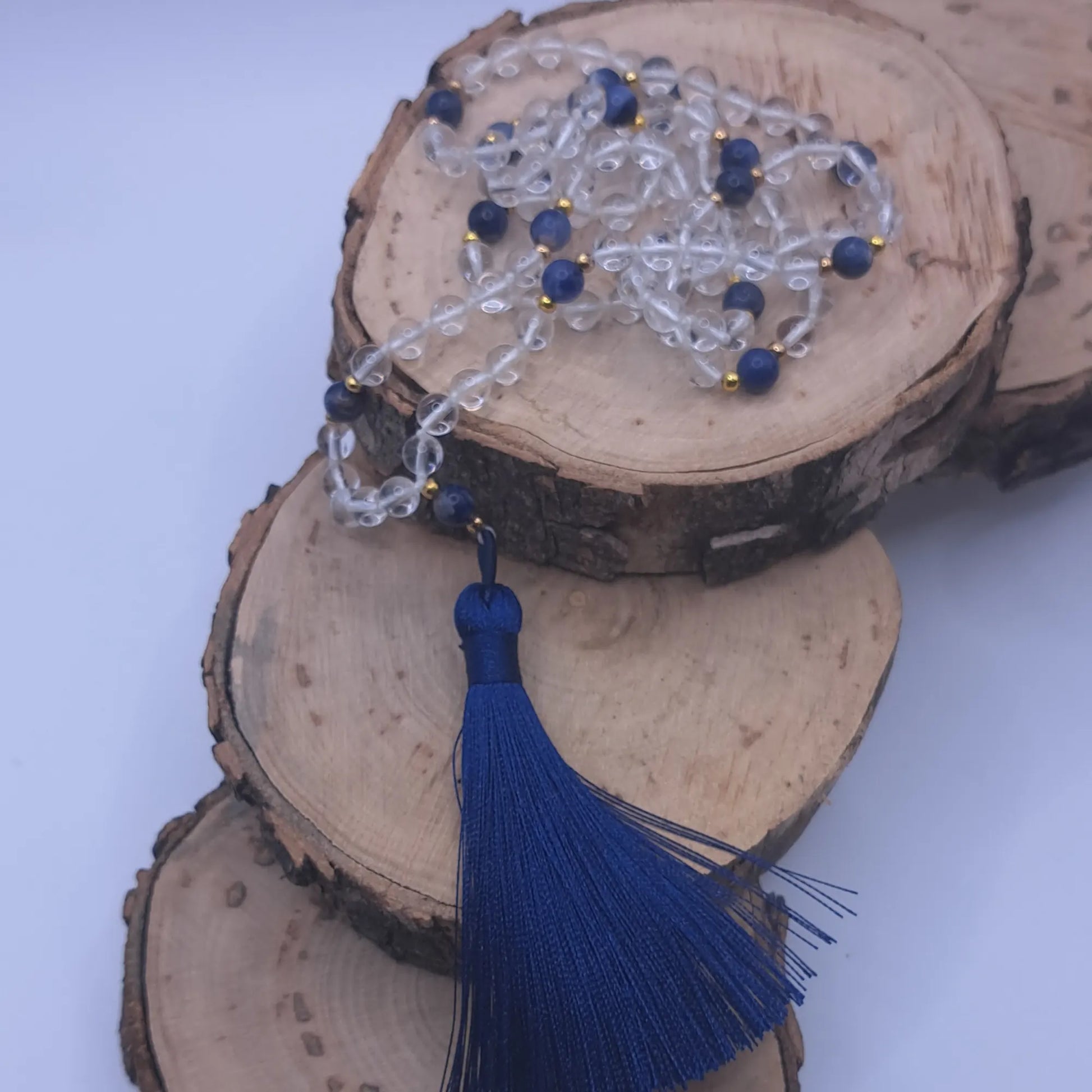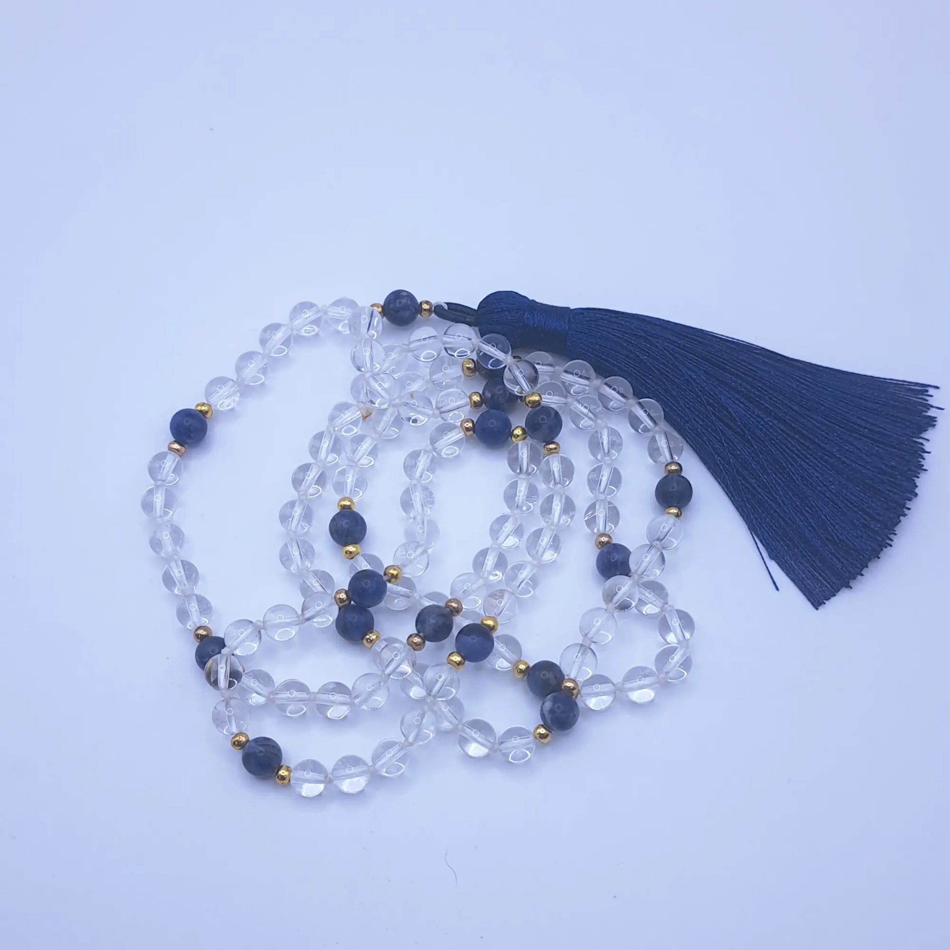 Handgeknüpfte Mala mit Bergkristall & Sodalith