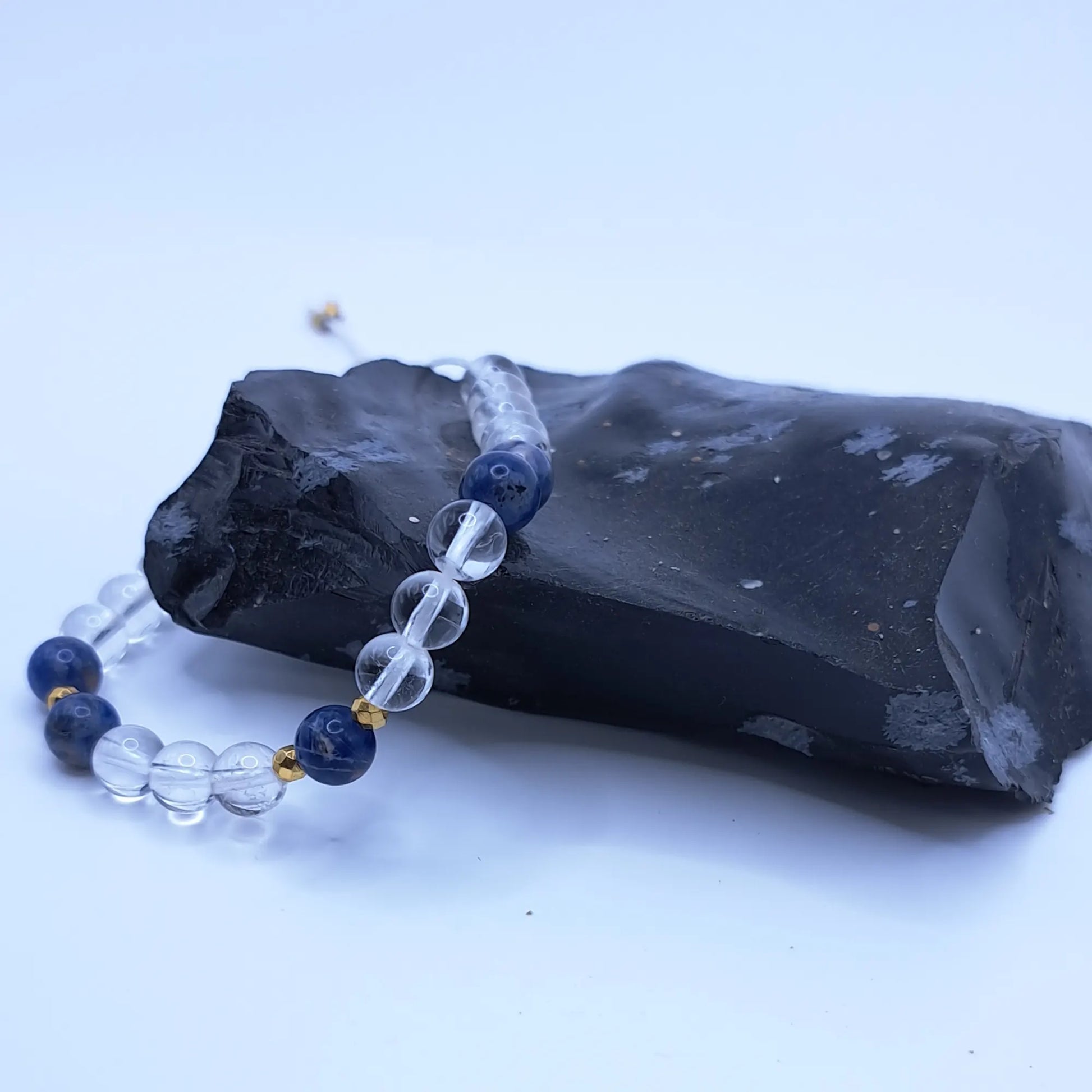 Handgeknüpftes Perlenarmband aus Bergkristall & Sodalith