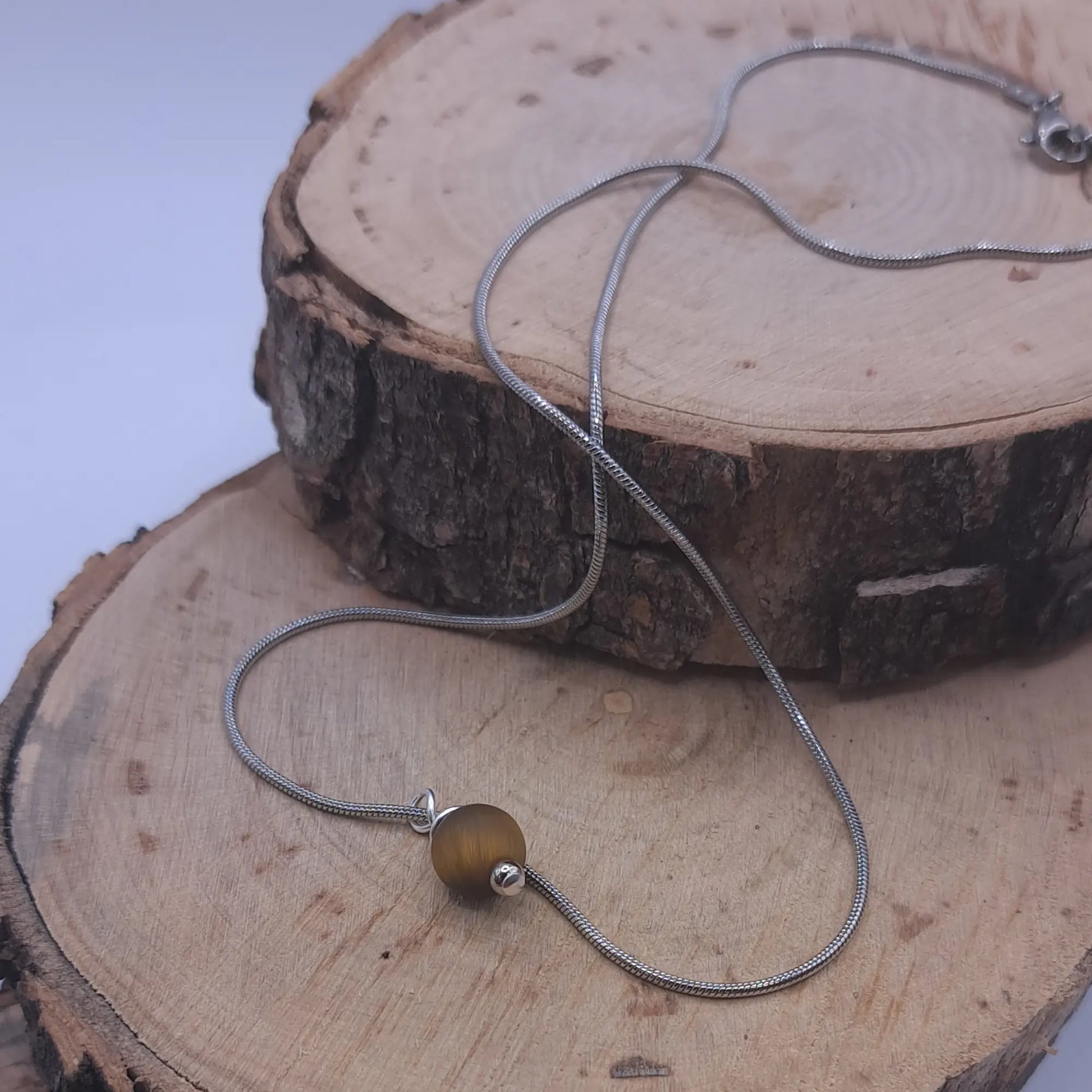 Heilsteinkette mit Tigerauge an 45 cm Edelstahl-Schlangenkette